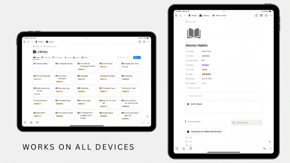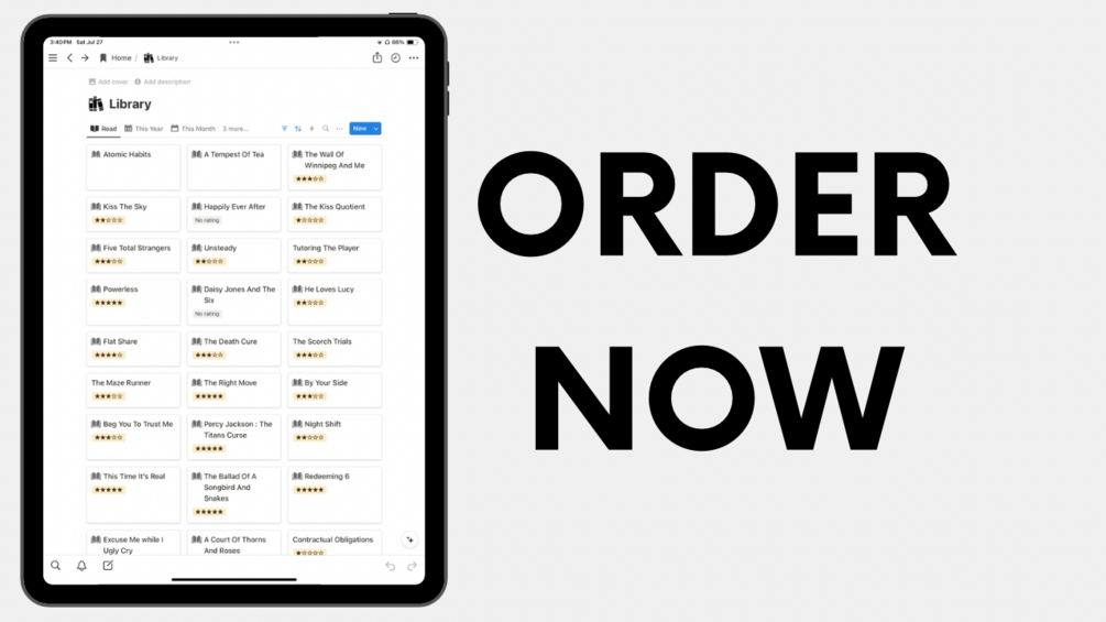 Notion Template : Book Library, book tracker, Goodreads